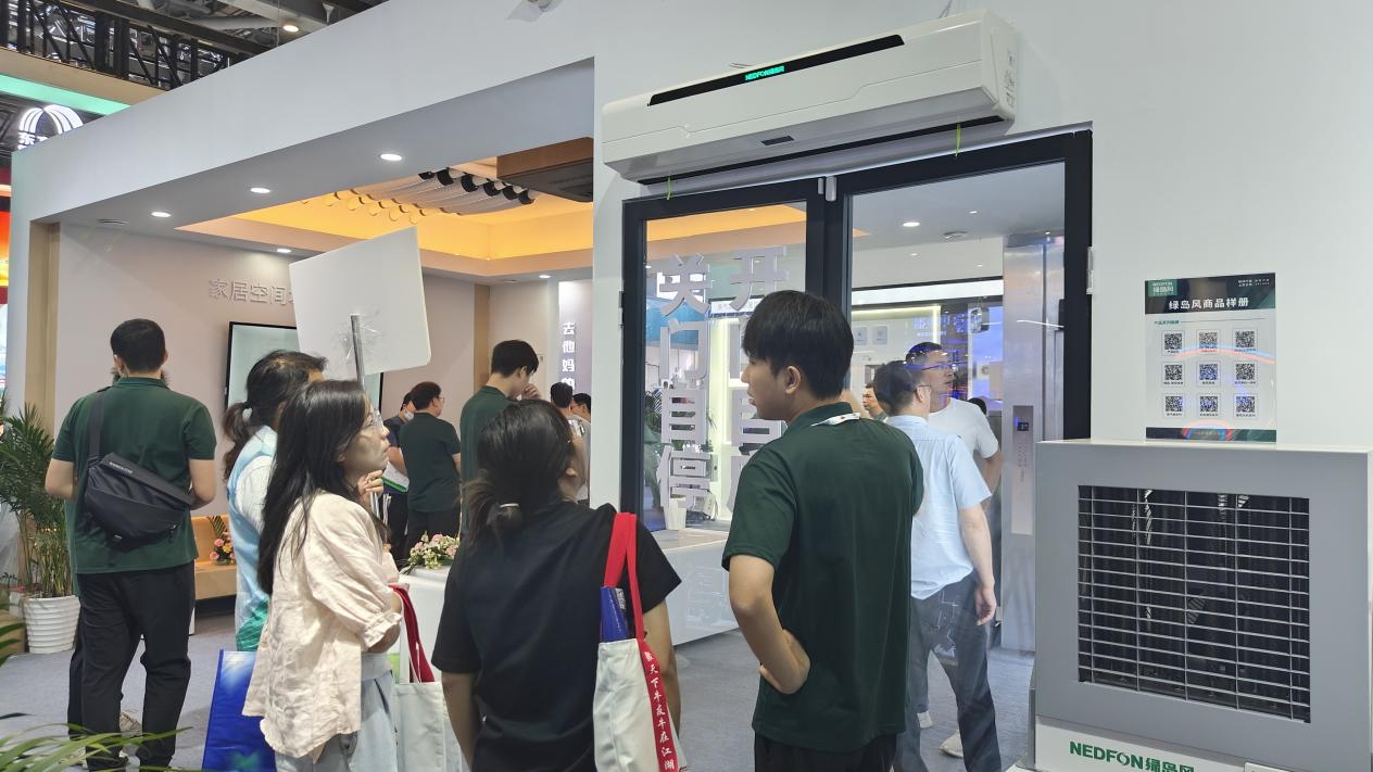 绿岛风工作人员通过专业的产品演示和数据对比,详细解答观众关于能效、安装适配性等问题,通过实测数据直观呈现产品优势,进一步强化了"让室内空气变得更好"品牌使命。现场观众对产品展现出的高性能、超低能耗表现以及智能化操作体验给予一致好评,多位专业买家更对新品在实际应用场景中的出色表现表示高度认可。